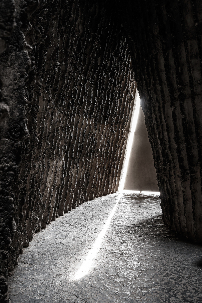 In Built to Last, Meg Stuart stages bodies against large, inert architectural elements. The performance's slow, resistive motion against mass recalls the spatial intensity of Peter Zumthor's Bruder Klaus Field Chapel, where the thick, inward walls create a somatic, almost pressurized enclosure. Stuart's choreography, like Zumthor's architecture, engages the body not through movement in space, but through space moving onto the body.